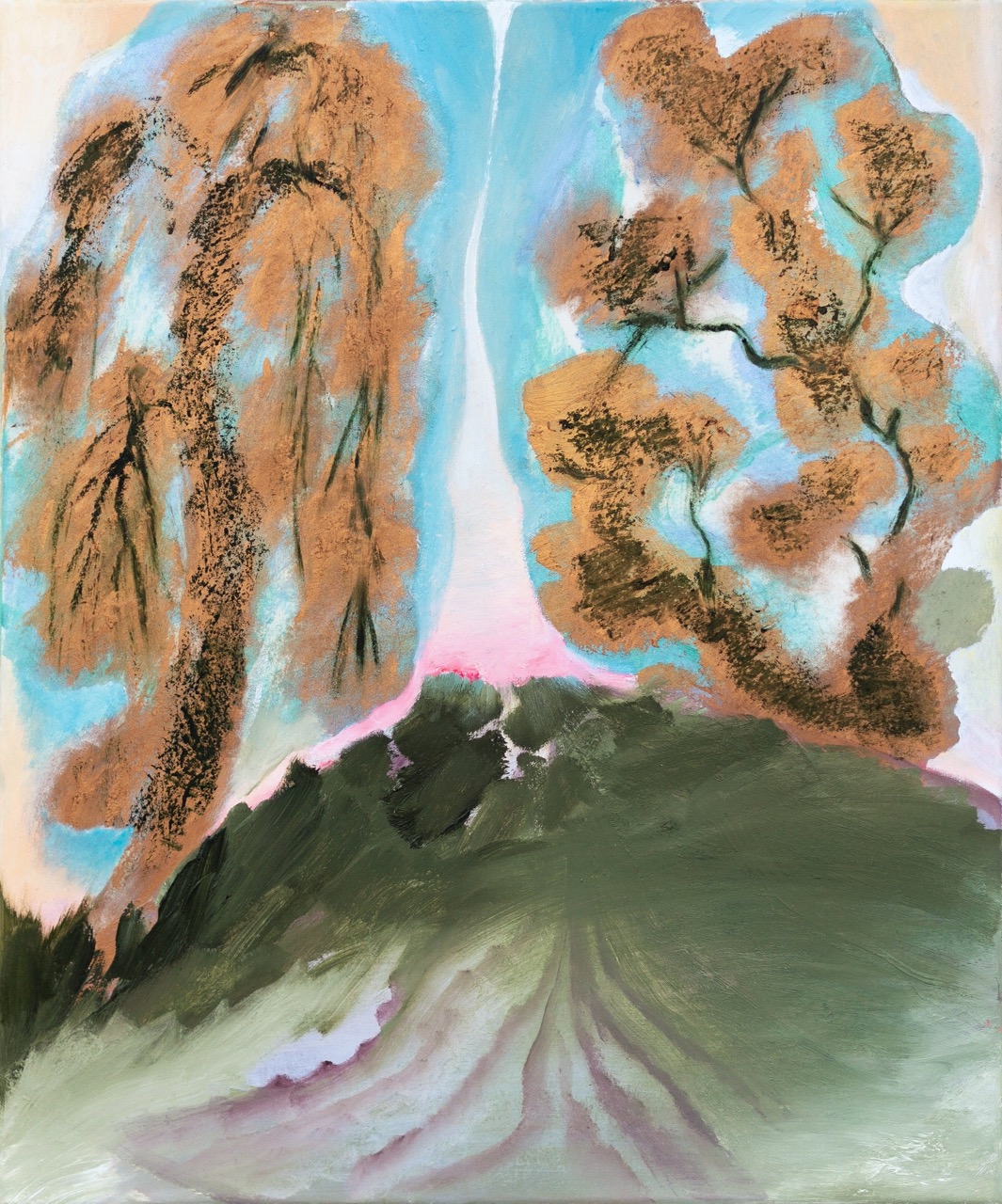 The exhibition project @park brings together landscape depictions that reveal the artist's multifaceted view on nature and her keen sense of composition. In her works, we encounter mountains, trees, and floral motifs arranged in symbolic, dreamlike scenes, and gaze upon natural spaces where mysterious creatures lurk.