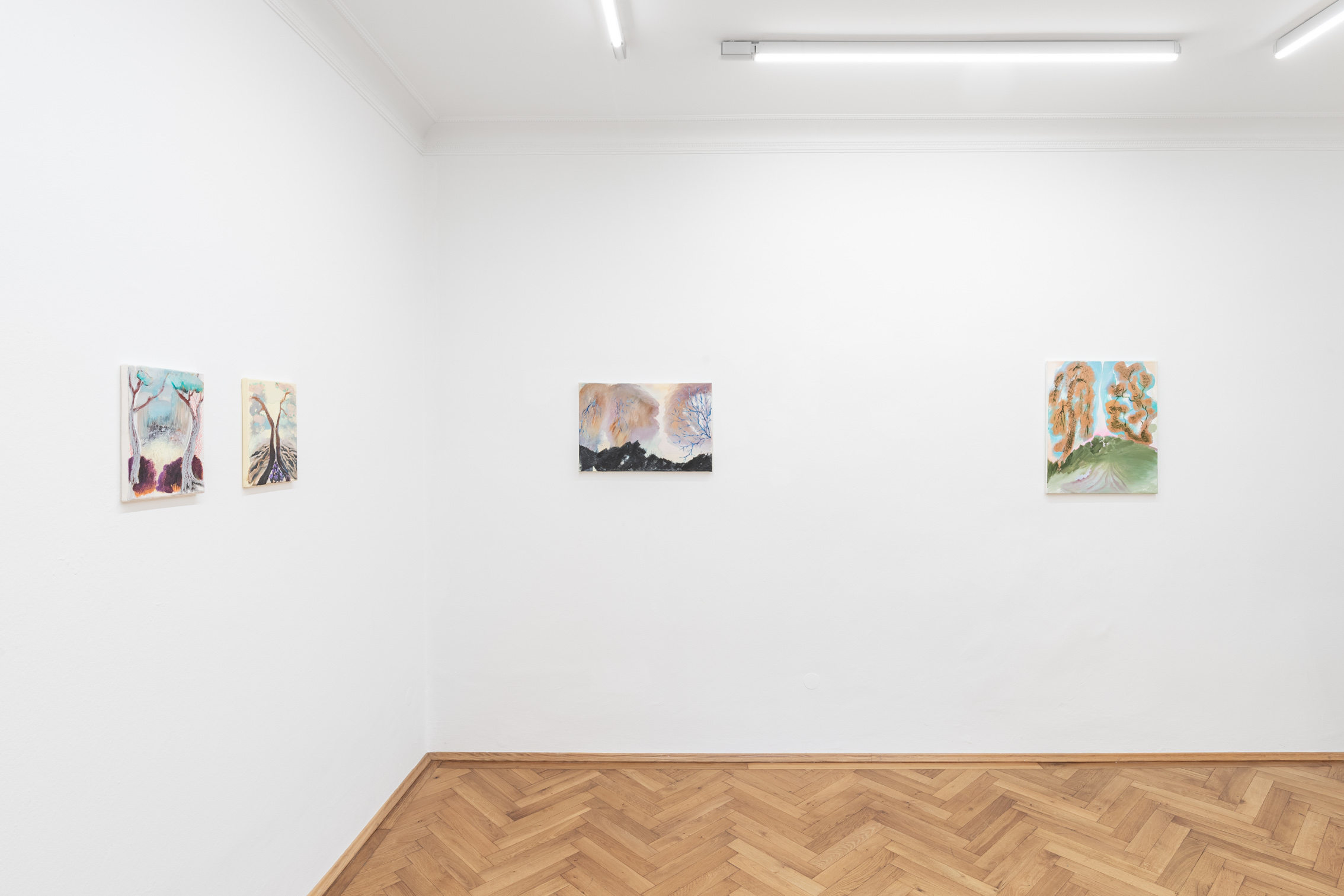 The exhibition project @park brings together landscape depictions that reveal the artist's multifaceted view on nature and her keen sense of composition. In her works, we encounter mountains, trees, and floral motifs arranged in symbolic, dreamlike scenes, and gaze upon natural spaces where mysterious creatures lurk.